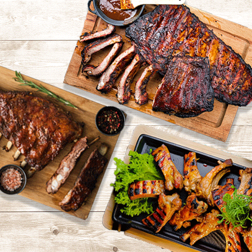 3kg Slow Cooked Pork RibsOvernight Marinated and Slow Cooked until fall off the bone. Cut into pairs and served.$149.90