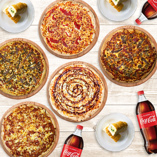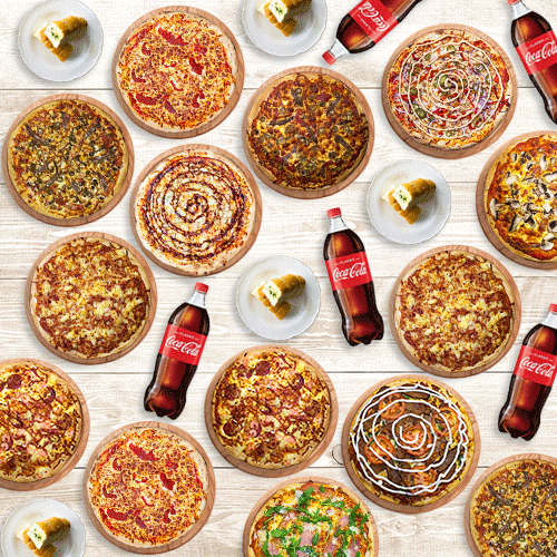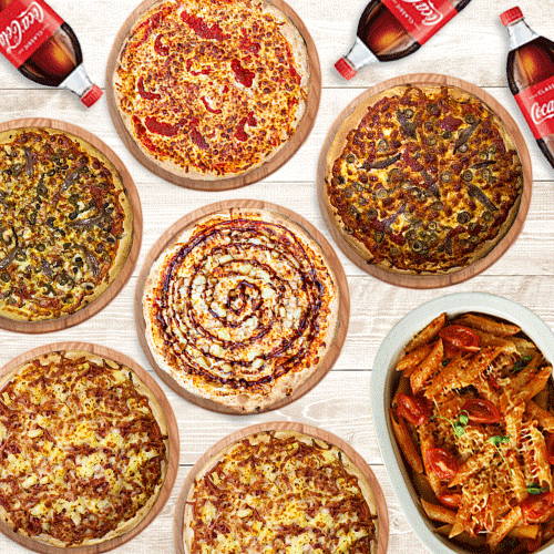 6 x Pizzas ,1 x Pasta Tray ,3 x 1.25L DrinksPasta Tray (Specs: 525mm x 300mm) All Pasta Served with Choice of Pasta As Penne upto 10 People.- Large Pizza x 6